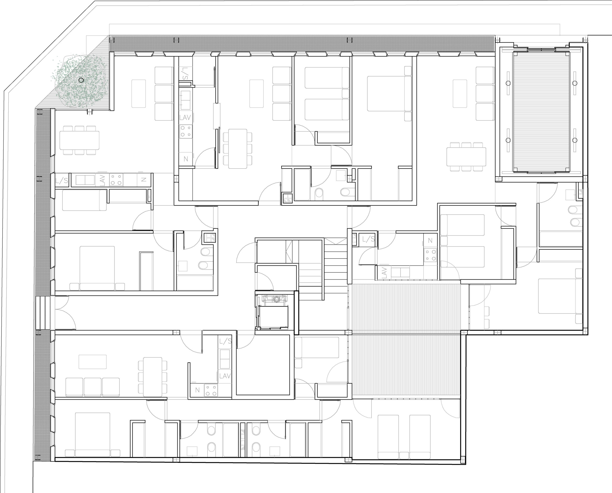 Se trata de un proyecto de situado en el actual límite urbano del pueblo, por lo que dispone de unas vistas privilegiadas sobre las montañas situadas al norte. El proyecto se define como la unión de 2 volúmenes diferenciados provenientes de las 2 calles a las que la parcela tiene orientación. Respondiendo a cada una de ellas según sus condicionantes, por un lado la calle Planes tiene un carácter marcadamente urbano con edificaciones a ambos lados de la calle, y por el otro nos encontramos con la calle “en proyecto” con una orientación prácticamente norte, con un gran desnivel orográfico a nuestro favor y con la vista de las montañas, por lo que se propone abrir la fachada al máximo para poder captar la agradable imagen del paisaje ofrecido.