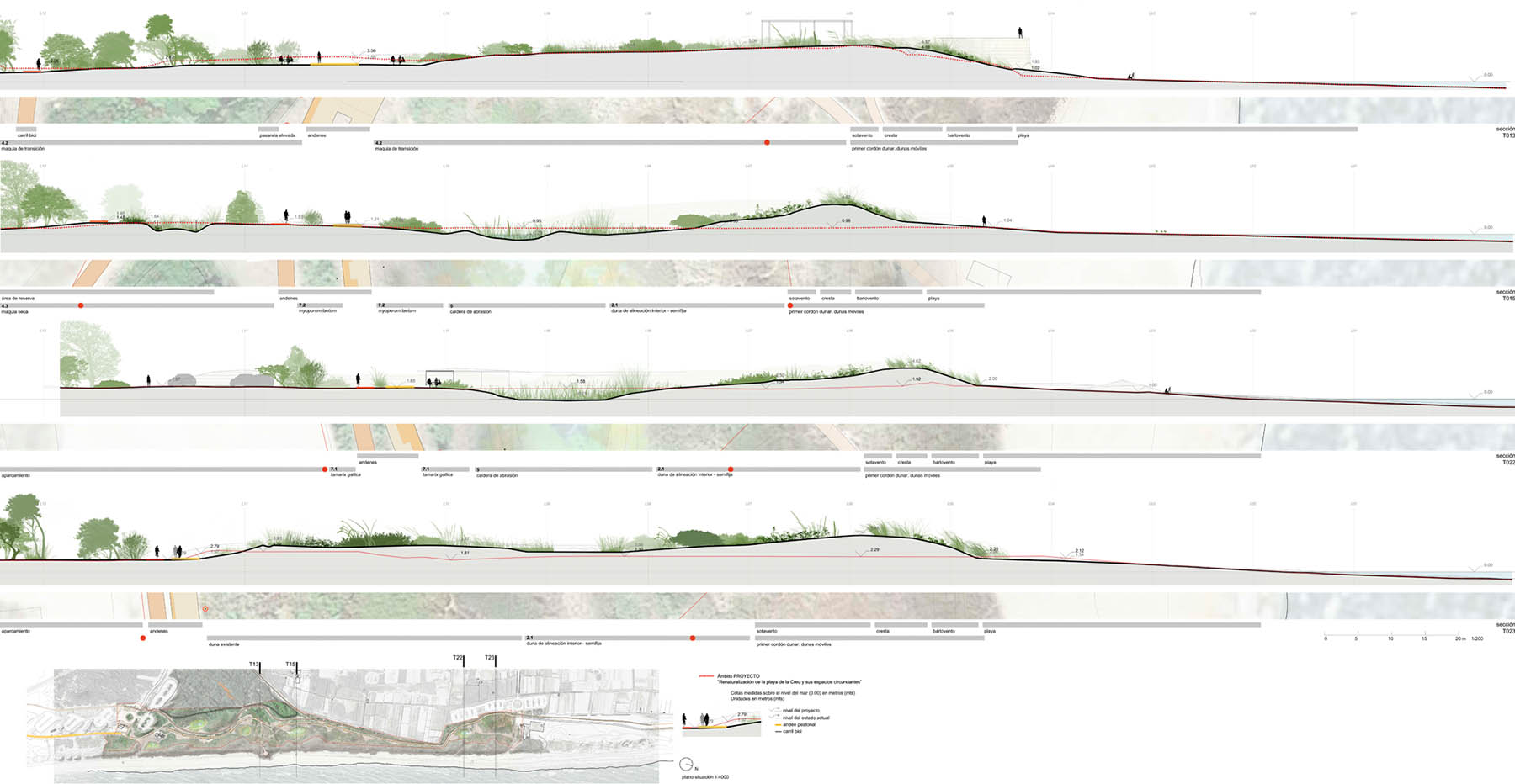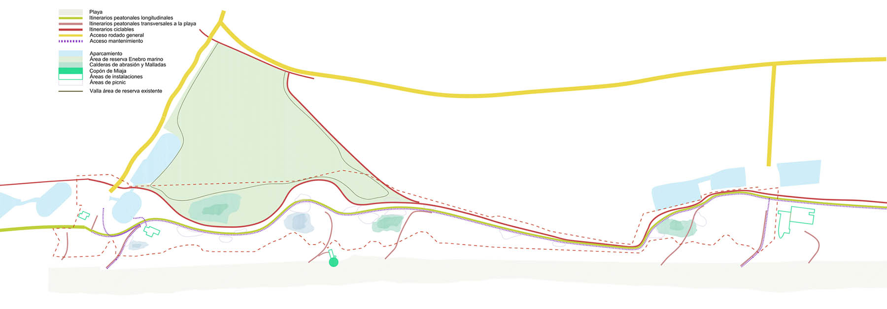 - Conexión con las infraestructuras de comunicación y acceso de la Playa de la Creu con los otros tramos existentes al norte y al sur de la propuesta.